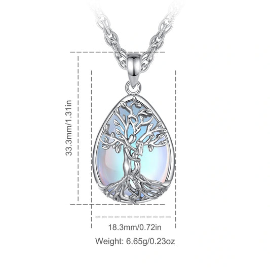 Rhodium-Plated Copper Tree of Life Pendant with Moonstone